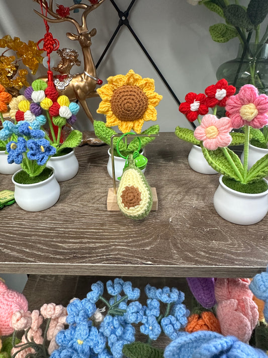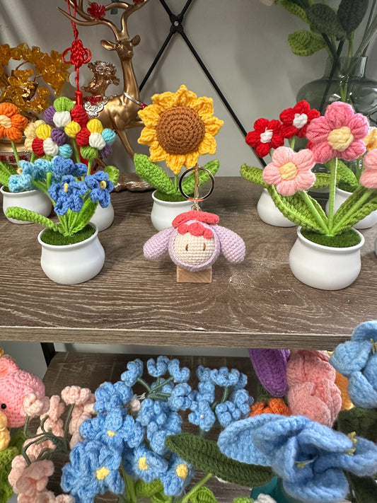 Hand knitted Woolen Key Chain/Bag Decor Sunflower