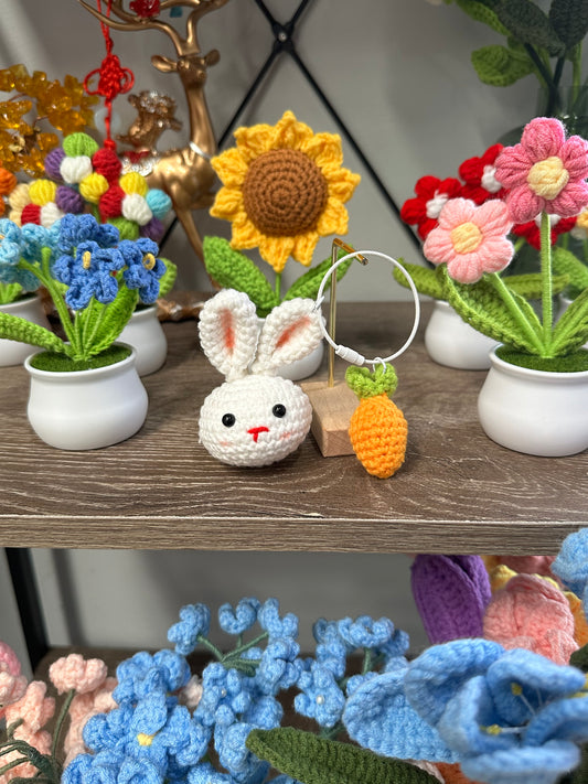 Hand knitted Woolen Key Chain/Bag Decor White Bunny with Carrot