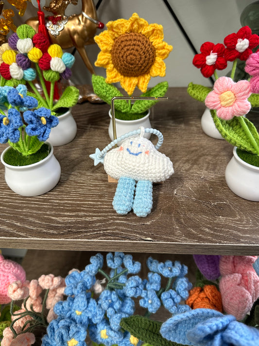 Hand knitted Woolen Key Chain/Bag Decor Blue Cloud