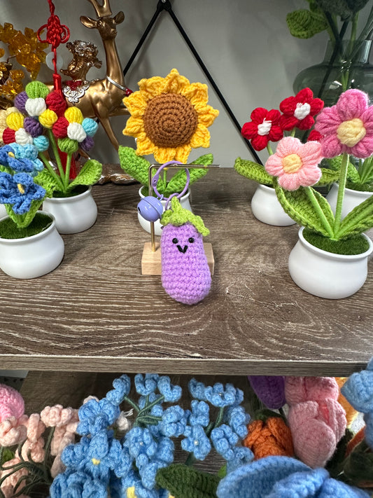 Hand knitted Woolen Key Chain/Bag Decor Eggplant