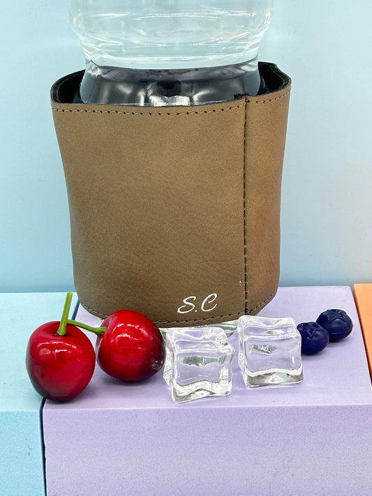 Personalised Initials Gold or Silver Emboss Leather Coffee cup Holder